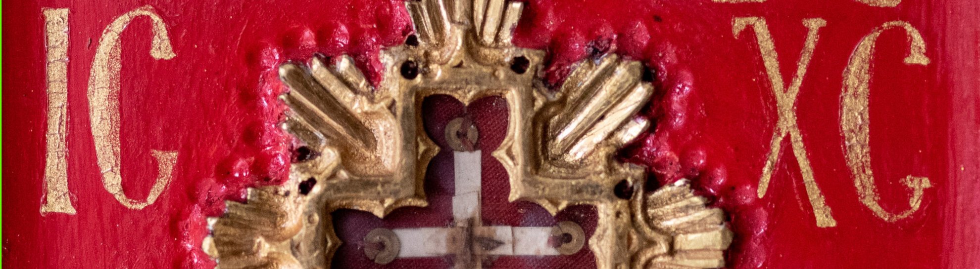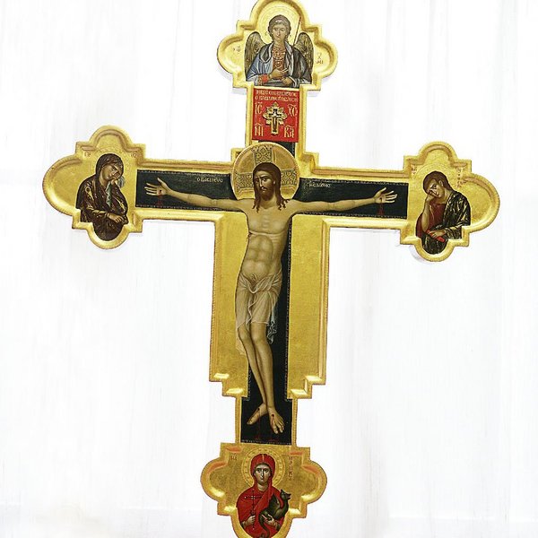 Das Ikonenkreuz mit der Grösse 90 auf 80 cm, das während aller Gottesdienste im Altarraum der Heilig Kreuz Kirche steht, wurde im Jahr 2006 geschaffen. Es stammt vom Ikonenkünstler Marakrius Tauc aus Wiesbaden.