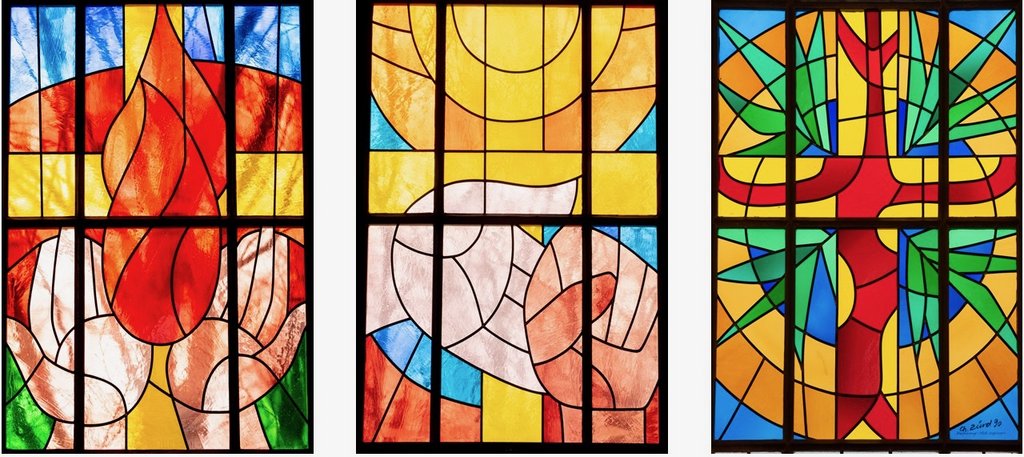 rechts: Gott gibt uns Leben im Zeichen des Lebensbaumes.