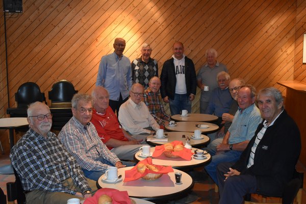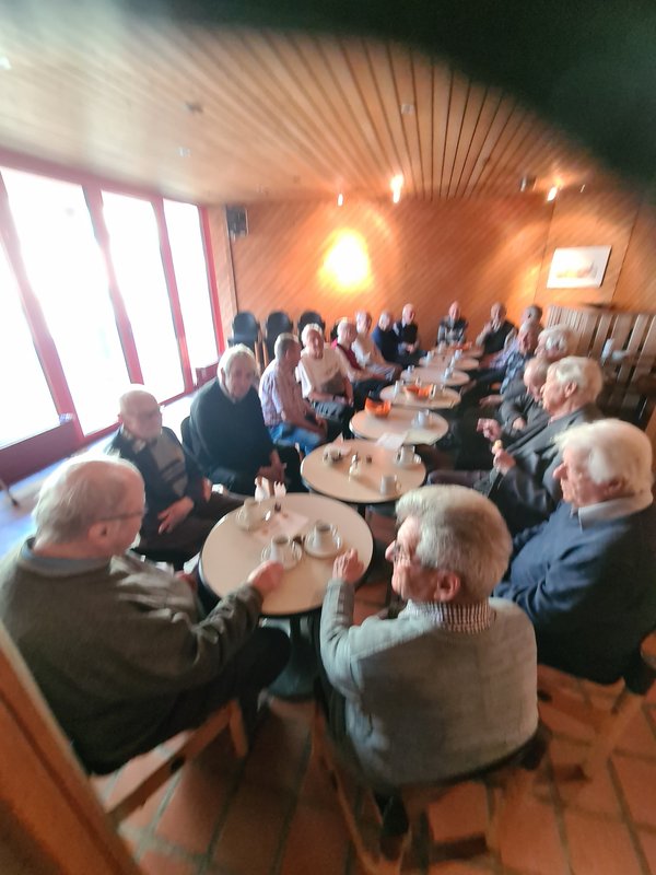 Auf dem Foto sieht man nur einen Teil der «Kaffi Labyrinth» Gruppe von Senioren, die zusammenkommen, um Kaffee zu trinken.