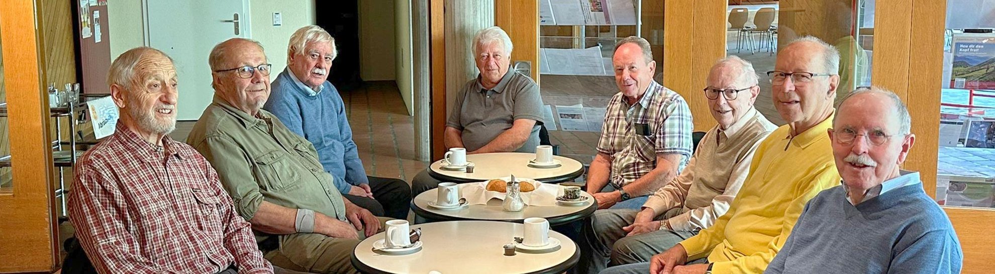 Auf dem Foto sieht man nur einen Teil der «Kaffi Labyrinth» Gruppe von Senioren, die zusammenkommen, um Kaffee zu trinken.